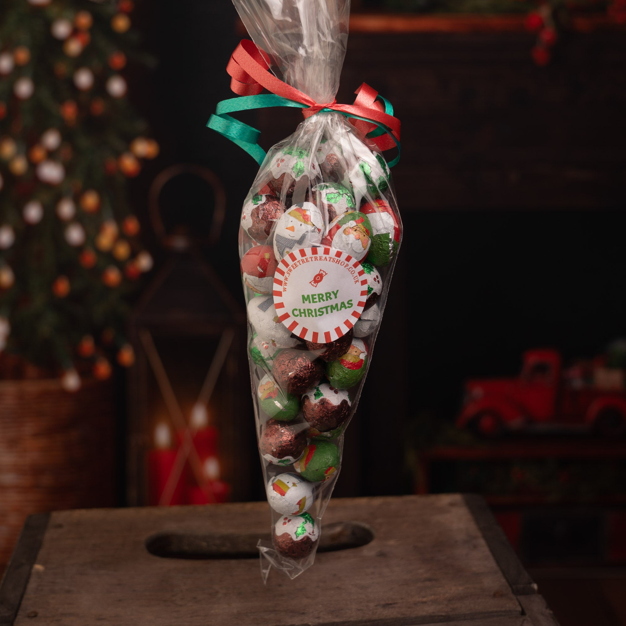 Choose either chocolate stars or baubles for a festive treat. An ideal stocking stuffer or Christmas Party favour!